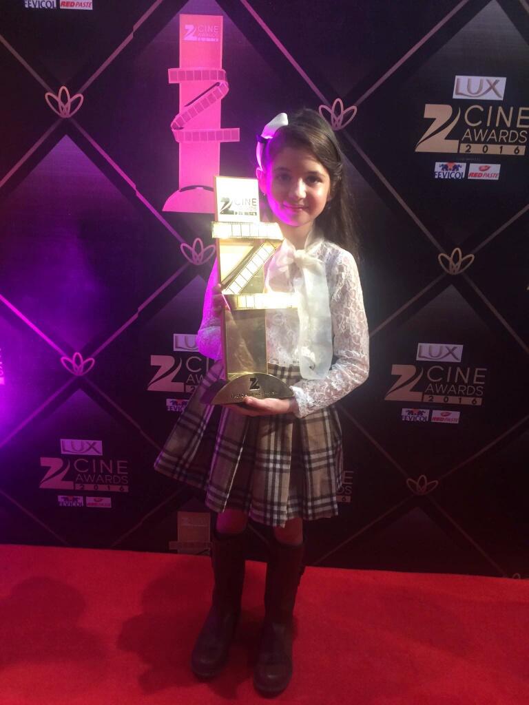 Cute Munni Aka @Harshaali032008 Won Best supporting Actress Award #BajrangiBhaijaan #ZeeCineAwards2016 #ZCA2016