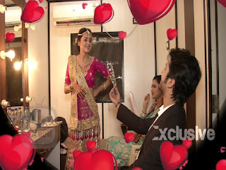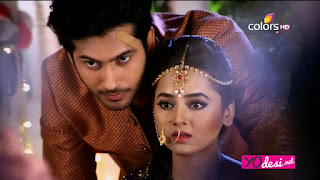 Ragini moved away shyly.Laksh went and stood near her.