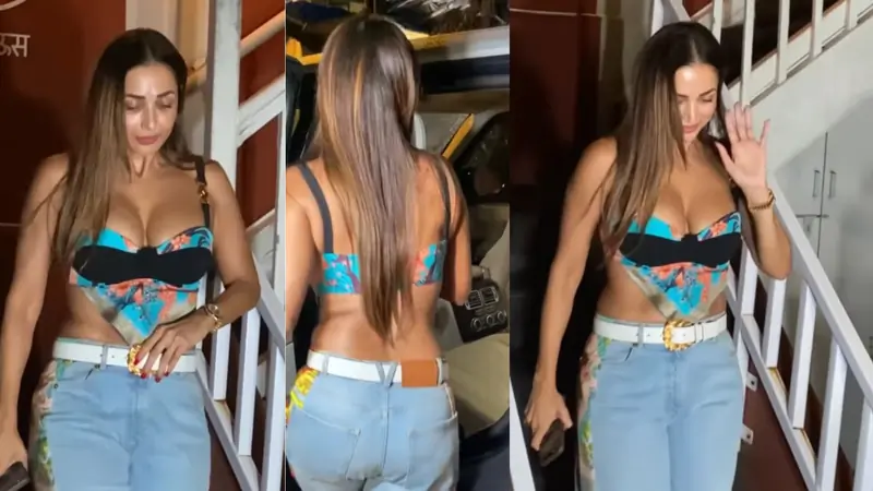 Malaika Arora is no stranger to the spotlight, but sometimes the attention comes with sharp criticism. Recently, the actress was spotted stepping out of a Mumbai restaurant in a striking look that instantly grabbed eyeballs. Malaika chose a printed scarf-style corset top with a plunging neckline, paired with light blue denim jeans featuring patchwork details. She accessorised with a white belt, sleek hair left open, a black sling bag, and a touch of gold on her wrist.