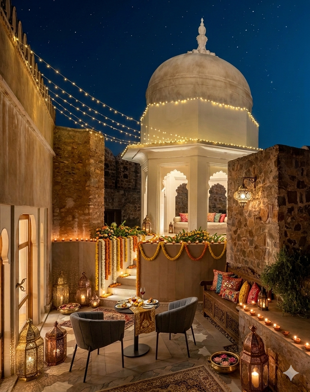 The sandstone courtyard of Suryagarh Palace glowed under golden lanterns and strings of marigolds as the mehendi ceremony for Palki continued with music and laughter.