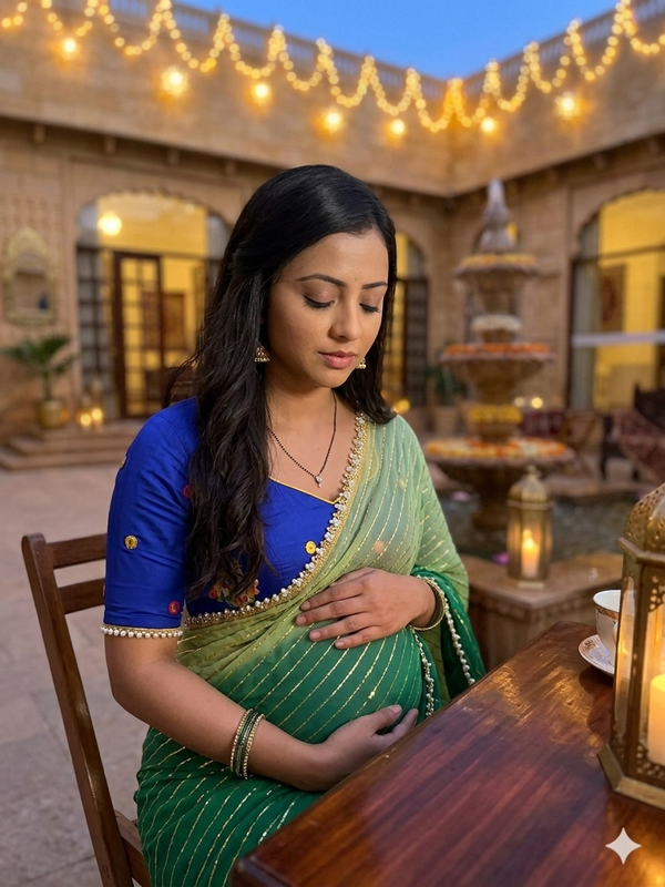Reva sat comfortably beside her mother Rhea, one hand resting gently over her small baby bump as the mehendi artist finished her design. Her husband Milind Jaiswal was inside in the lounge with their little son, making sure the child didn’t disturb the ceremony.