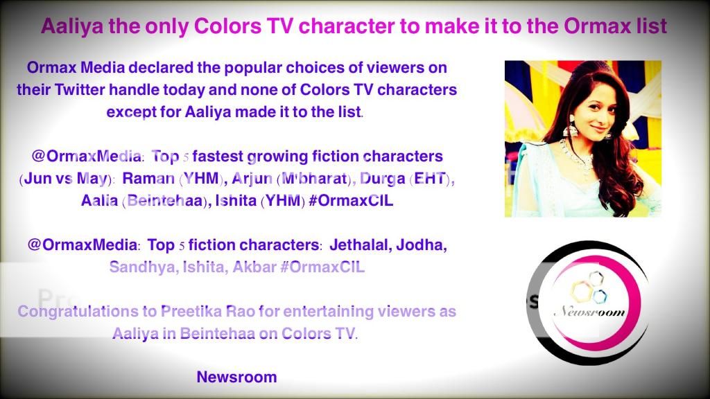 Wow one after another gr8 news first BI on no.1 then zaya n nw preetika our aliya...congrats to her...she truly truly deserve it...she is really perfect as aliya n is doing full justice to character...nobody cn perform ths character as brilliantly as her...n thanks to her for giving us aliya n entertaining us with her gr8 acting skills...love her...she is brilliant actress n an amazing person.