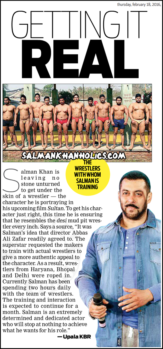 Says a source, "It was Salman Khan's idea that director Abbas Ali Zafar readily agreed to. The superstar requested the makers of Sultan to train with actual wrestlers to give a more authentic appeal to the character. As a result wrestlers from Haryana, Bhopal and Delhi were roped in and currently Salman Khan has been spending two hours daily with the team of actual wrestlers.The training and interaction is expected to continue for a month. It was Salman's idea to change his body language completely to resemble a desi wrestler. Salman is an extremely determined and dedicated actor who will stop at nothing to achieve what he wants for his role."
