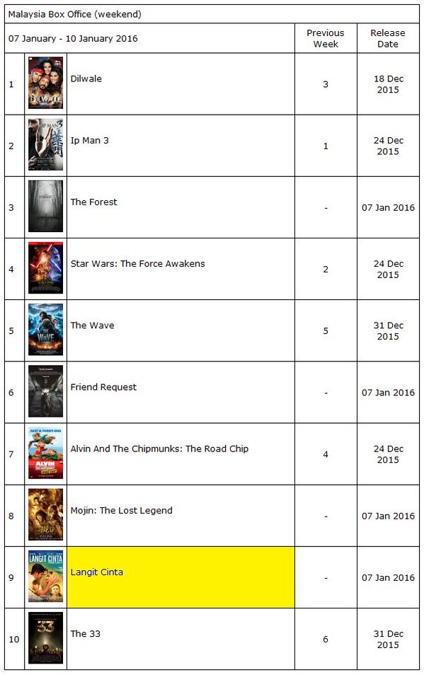 SRKUniverse Malaysia @SRKUniverseMsiaDILWALE tops Malaysia's box office chart leaving behind Ip Man 3 & Star Wars