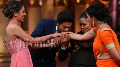 Haha,but look at their expressions.πOr is it the other way...women don't want to leave the chance of getting kissed by SRK?π