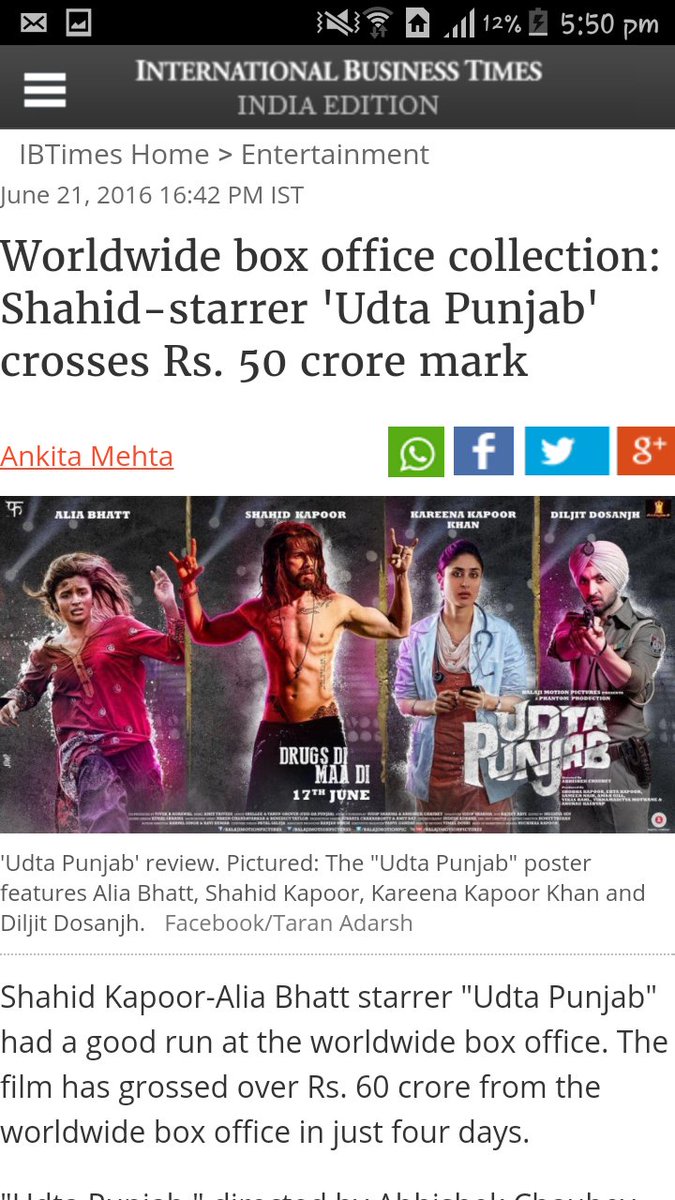 I was expecting a more hard hitting film, especially showcasing a bit more of the drug epedemic that's gripped Punjab and how it affects families and they did have Bali's story but there should've been more but nevertheless it's gripping, fast paced and Shahid and Alia are beyond brilliant. Watch it.