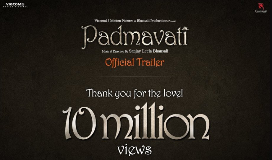 Straight away #PadmavatiTrailer sets a record, registers 3M+ views within 6hrs of its release.Trending #1 on Twitter, Youtube @FilmPadmavati