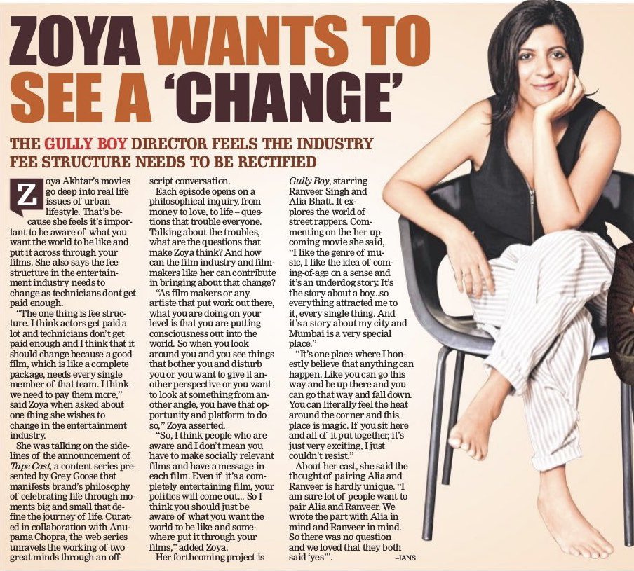 I like the genre of music,I like the idea of coming-of-age on a sense & it's an underdog story. It's the story about a boy,so everything attracted me to it,every single thing. And it's a story abt my city and Mumbai is a very special place -Zoya Akhtar #GullyBoy (FPJ)