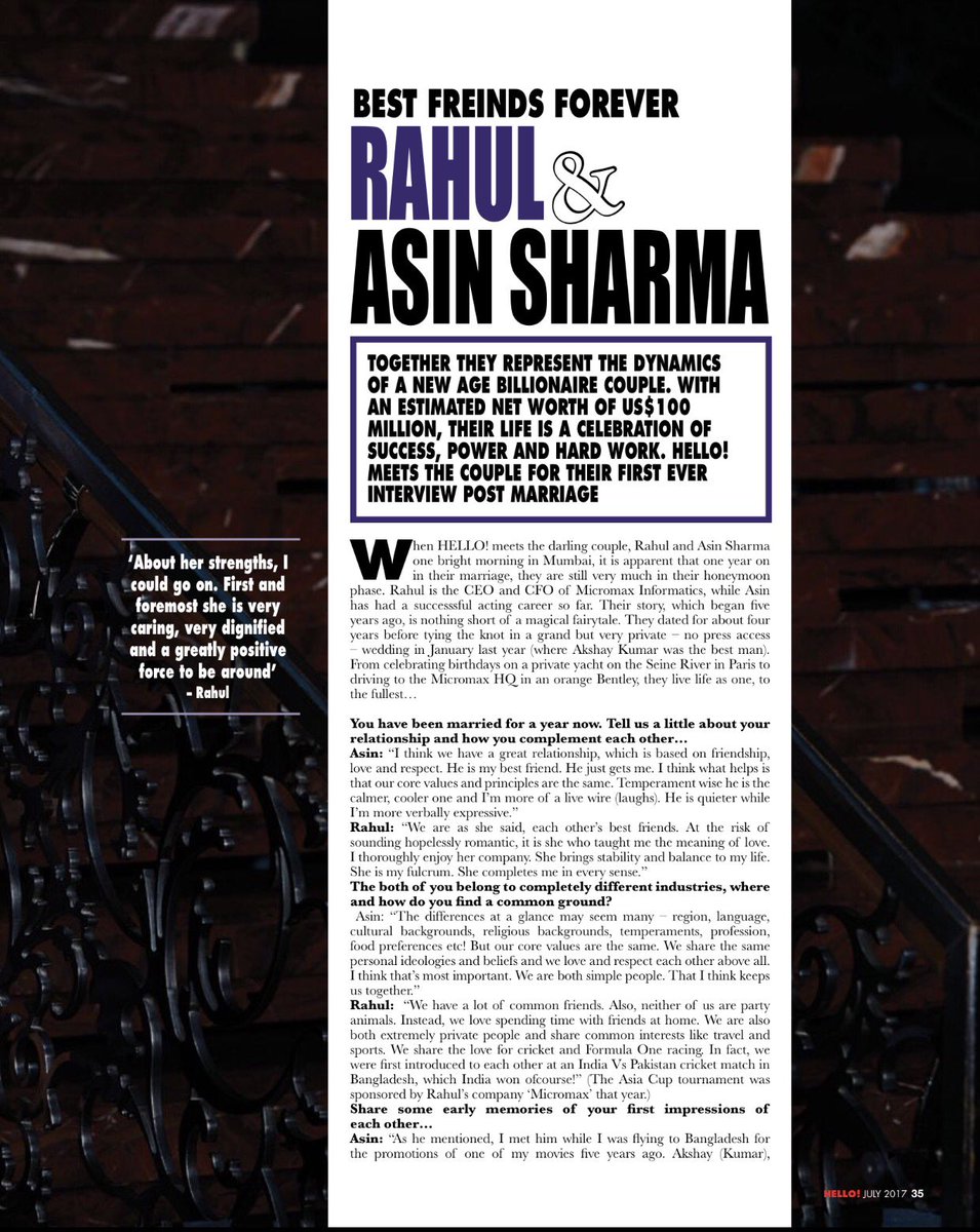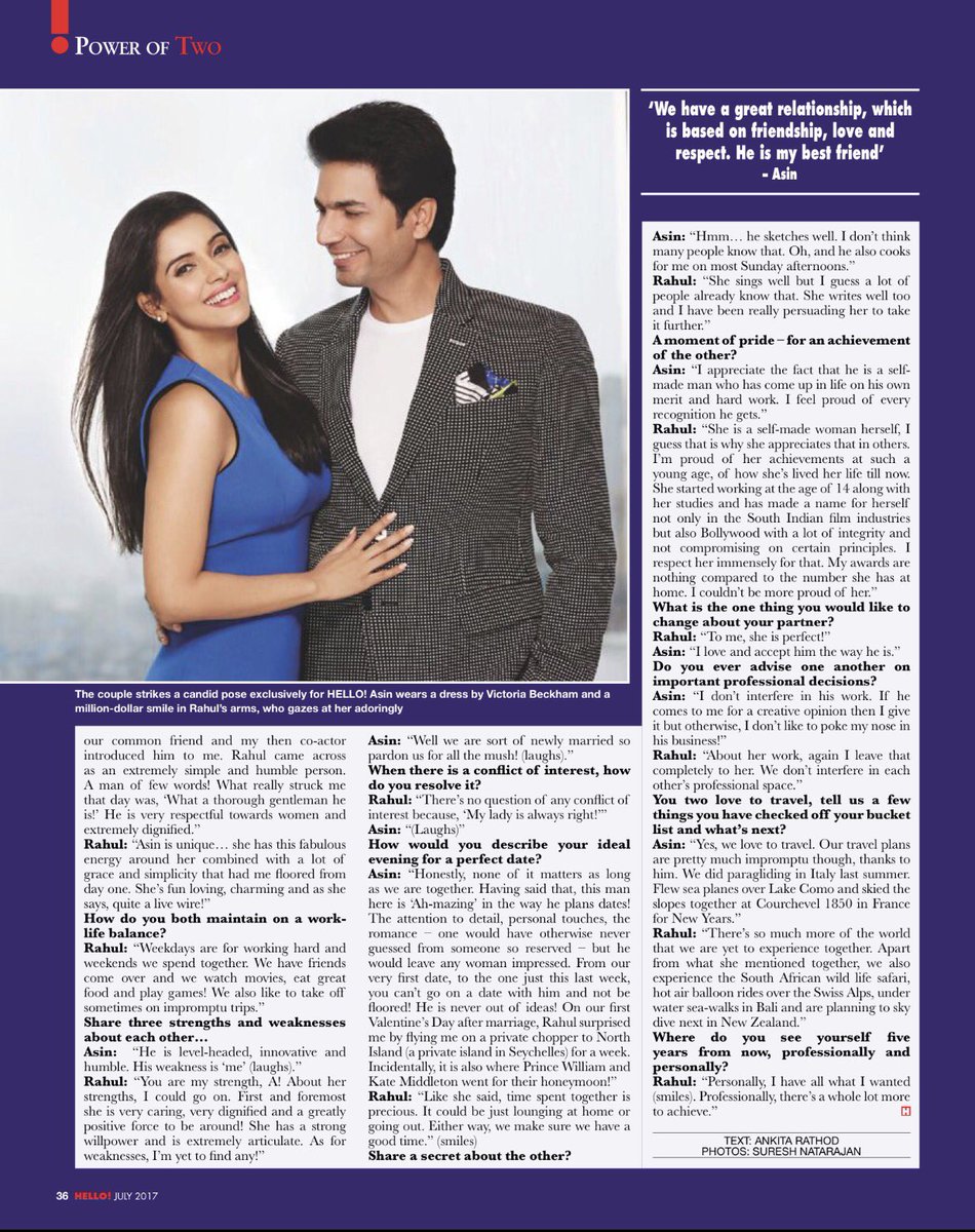 iage interview of #Asin and @rahulsharma to @HELLOmagIndia