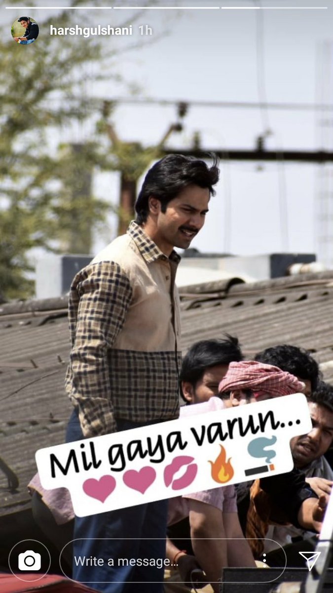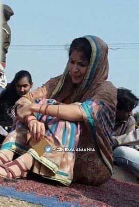 Both Varun and Anushka are dressed modestly in the picture. While he sports a moustache, she is seen in a colourful saree with a pallu' to cover her head.