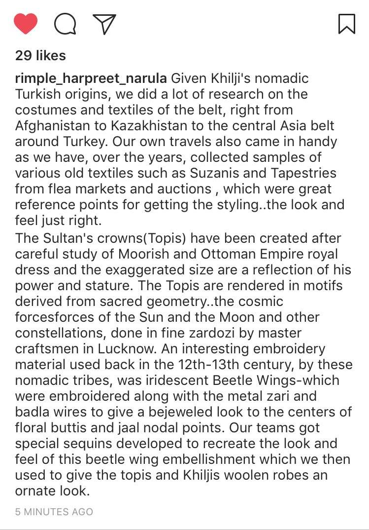 [Insta update] Designers @Rimple_Harpreet 's post on Khilji's nomadic Turkish origins,th kind of research th team undertook: read