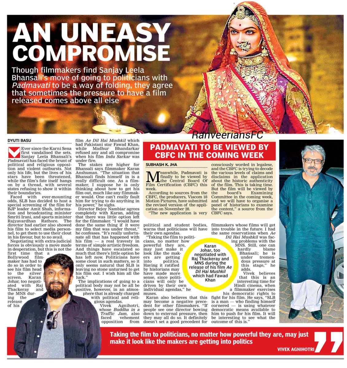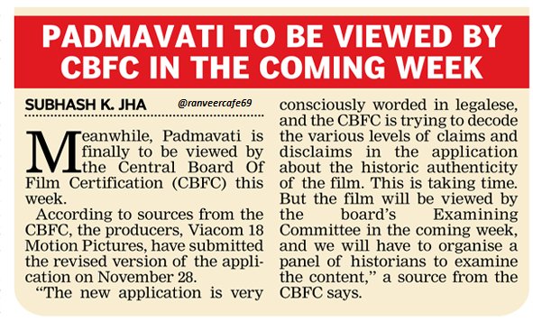 Meanwhile, Padmavati is finally to be viewed by the Central Board Of Film Certification (CBFC) this week.