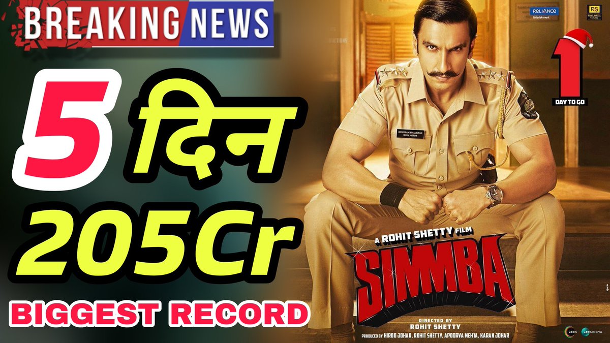 #Simmba collected approx 25Cr on 5th day. Total 121Cr approx. RECORD. Check out 5days overseas & total worldwide collection here https://youtu.be/OlZlp40N3-Q