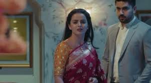 Suddenly Kabir’s chachi Chanda opened the door pushing the door hard and barged into the room.Because of her sudden push,Kabir and Pooja fell down.