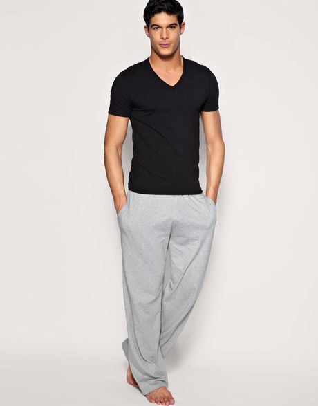 He went to his closet, and picked out some light sweats, with a black v-neck tee...