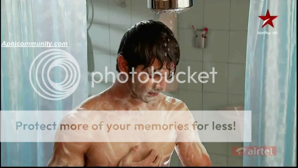 LOL! This'll work wonders for a toilet soap ad!In the first pic, there's no one with him, in the last pic, his wife is dying to fall onto him and RabbaVe!The shower effect! :D :D