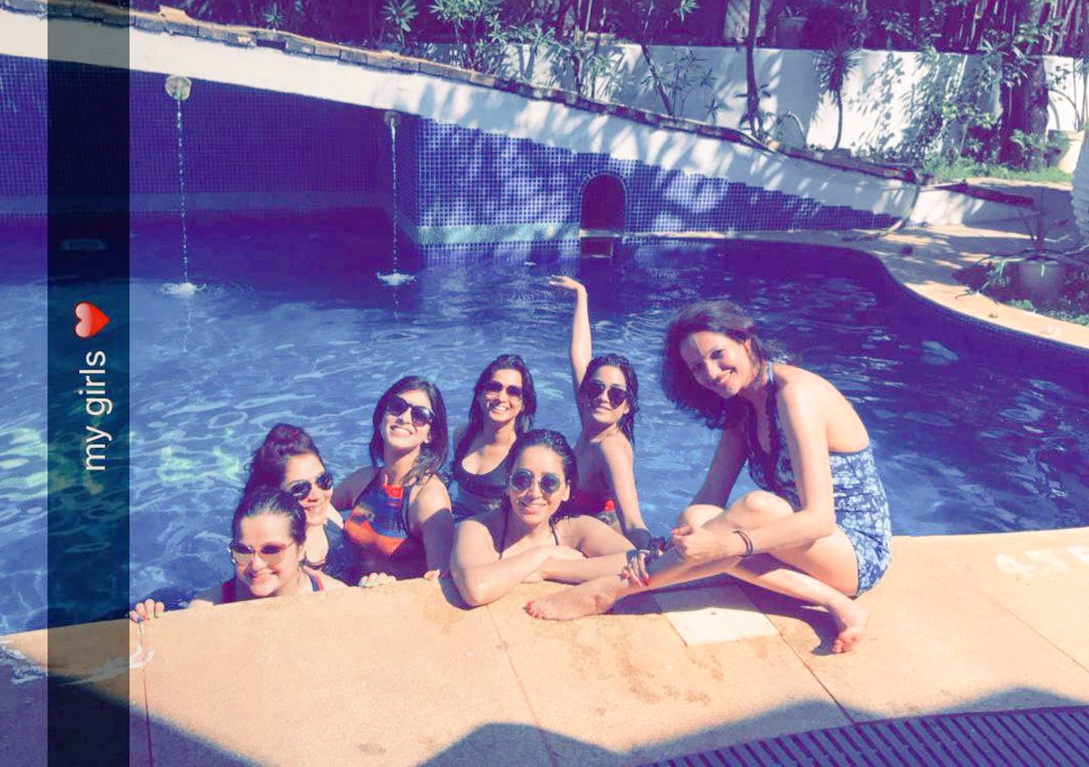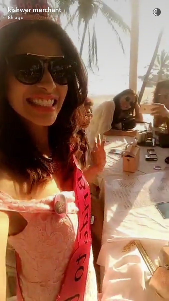 Our cutest #AshaNegi with friends on Kishwer Merchant's Bridal Shower in Goa- Credits: Kishwermerchan Snapchat