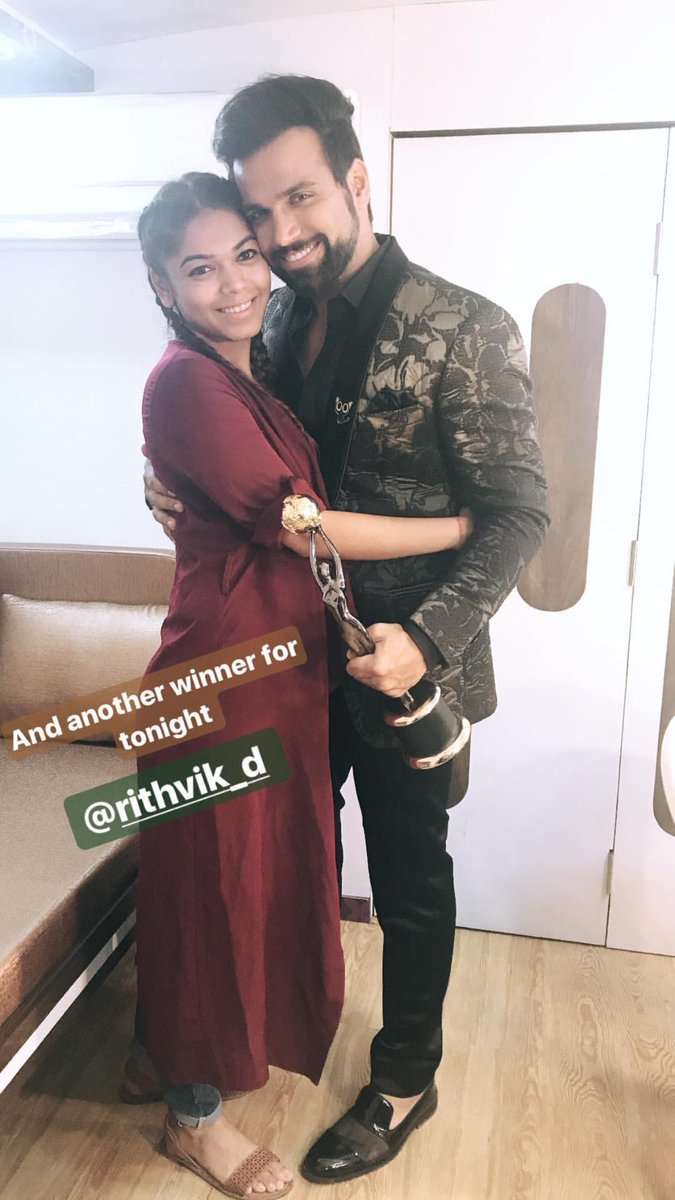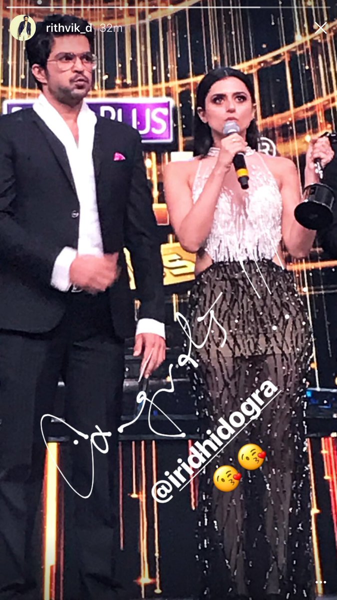The cutest @iRidhiDogra won 'Best Villain' with @RaQesh19 today at #GoldAward2017 #RithvikDhanjani Instagram post