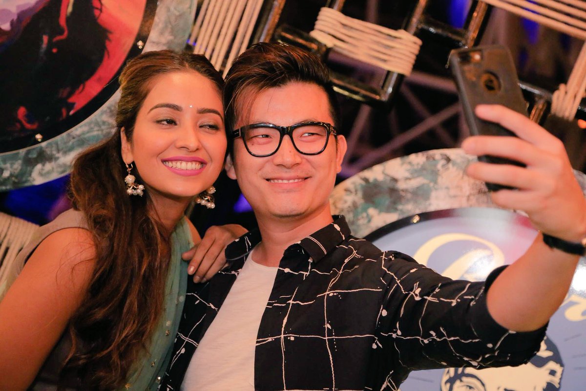 The prettiest #AshaNegi with friends at the Pre Diwali party hosted by Riddhi and Raqesh at The Bar Stadium. 1/3