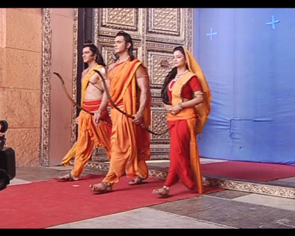 Three Channel cover they showed SiyaRam n Lakshman r ready n leaving Ayodhya , all r crying n Ram doing Puja of Shivji then Siya join Ram who was shock to see Siya like this..Ram give permission to Siya...n off screen masti off all actors..n how they r handling this scorching heat