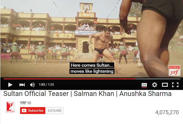 Now its more than 4 M for #SultanTeaser - No stopping for this Haryane ka Sher!#Fastest4MViewsOnSultanTeaser