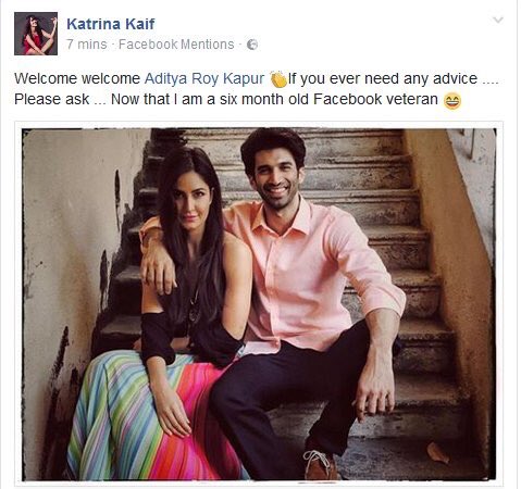 1Facebook veteran #KatrinaKaif welcomes #AdityaRoyKapur to the social media platform with a fair dose of wit.