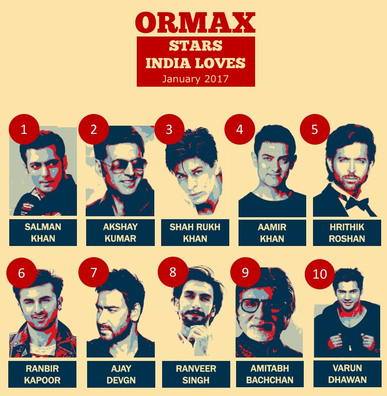 Ormax Stars India Loves: Top 10 male stars for Jan 2017 #OrmaxSIL