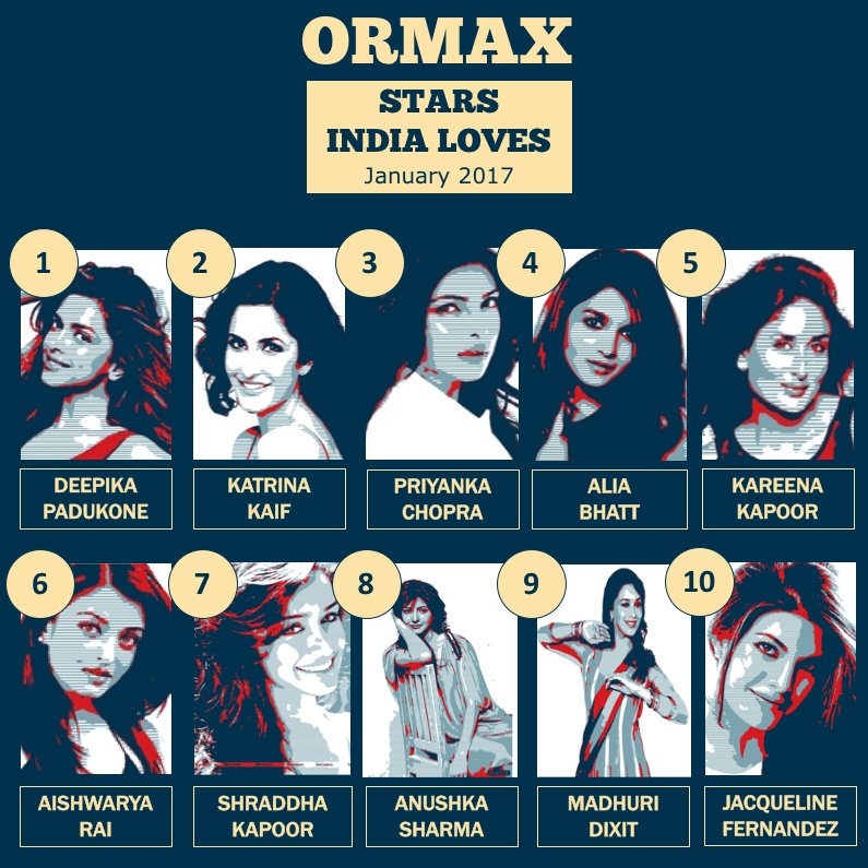 1Ormax Stars India Loves: Top 10 female stars for Jan 2017 #OrmaxSIL