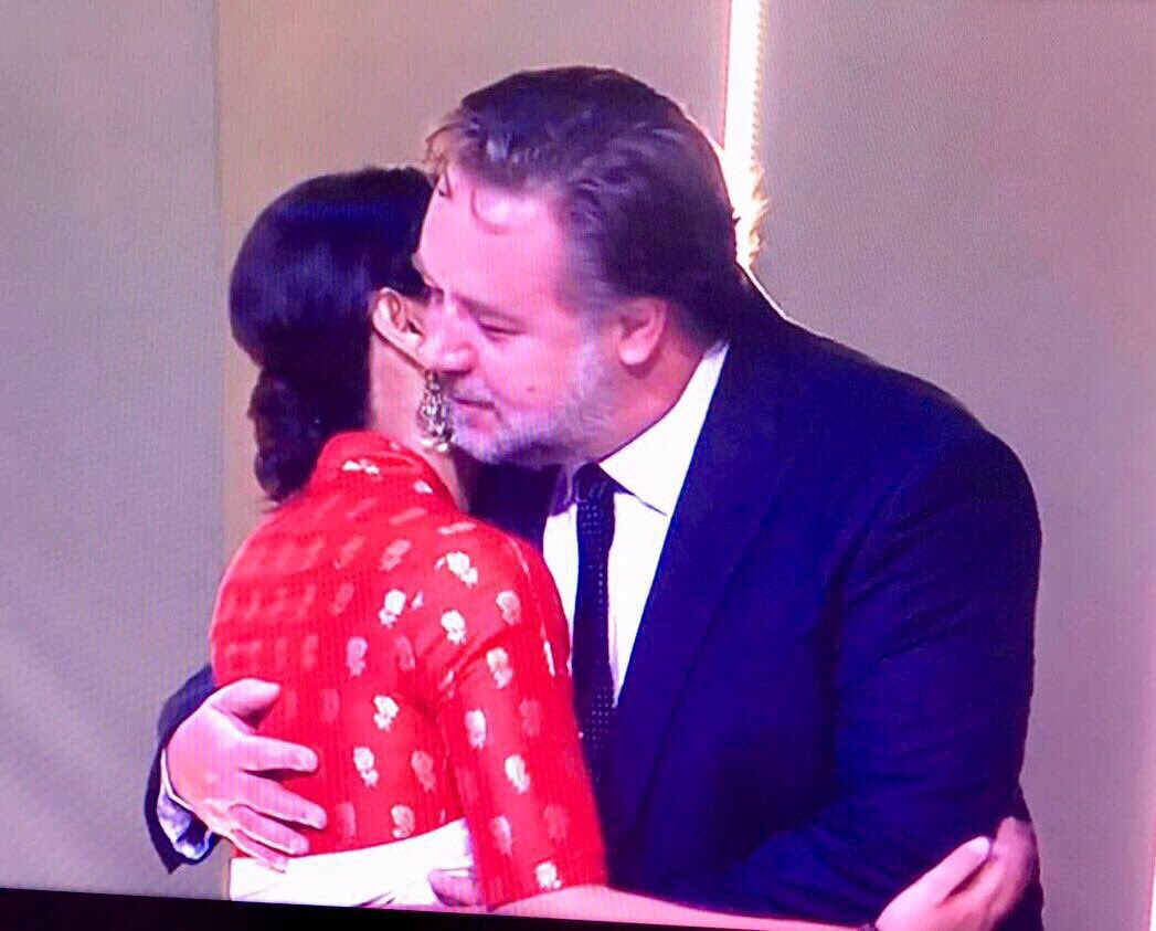 #ItJustHappened A special moment for Indian cinema when #Dangal won the prestigious AACTA award. And yes Russell Crowe was also lucky enough to get a hug from our very own Sakshi Tanwar.!!