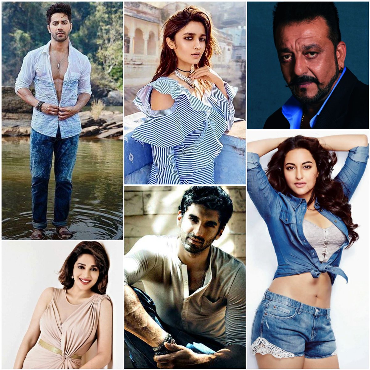 Karan Johar brings six big Bollywood names together in #KALANK! It's Varun Dhawan, Alia Bhatt, Sanjay Dutt, Madhuri Dixit, Aditya Roy Kapur & Sonakshi Sinha in the period love story set against the backdrop of Partition. Directed by Abhishek Varman. Announcement on the way! [1/2]