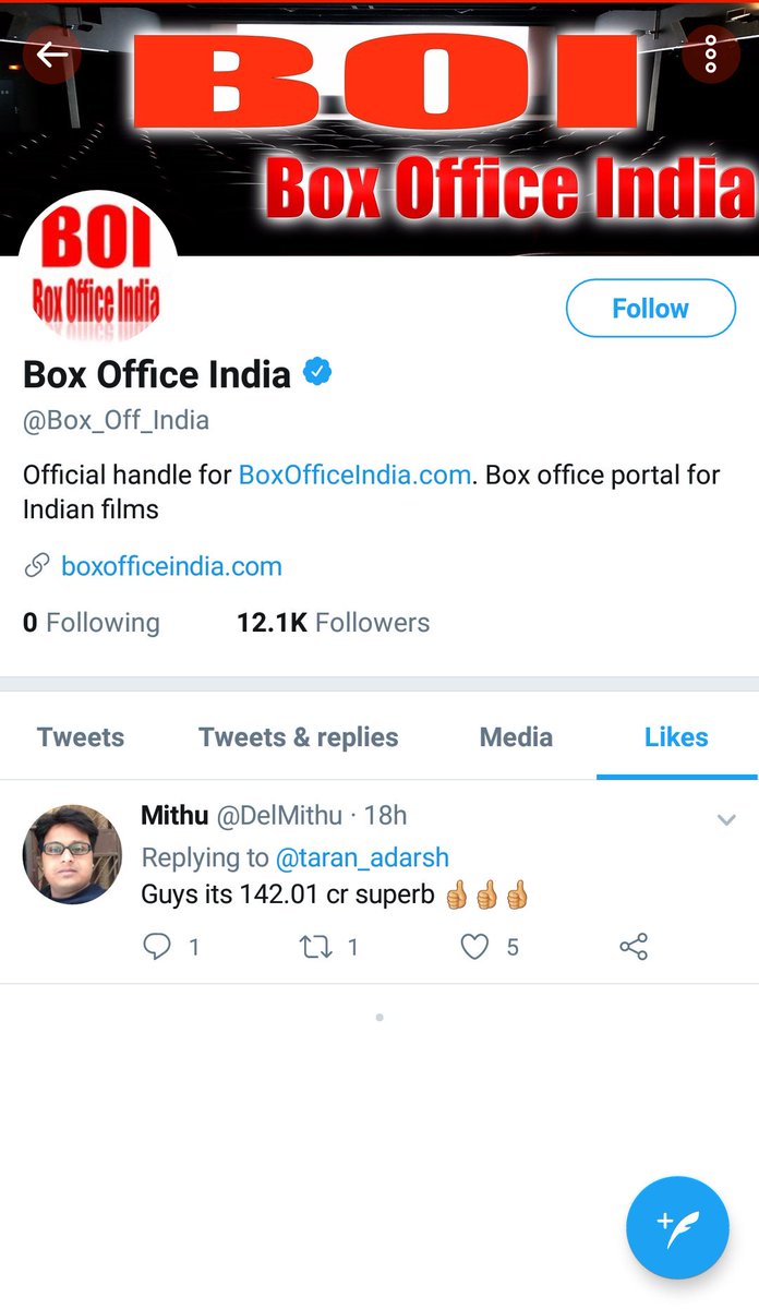 I follow their twitter account.The account likes a Salman fan's reply on Race 3. Page