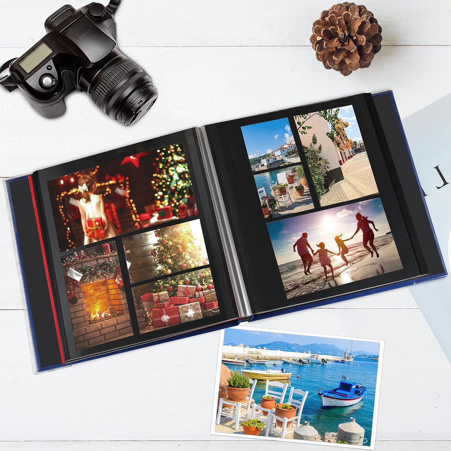 something like that The velvet cover and black inner page make the album delicate. The MDF back panel combined with firm binding makes the book more solid. The protective film and soft case make your precious memory safer than ever.
