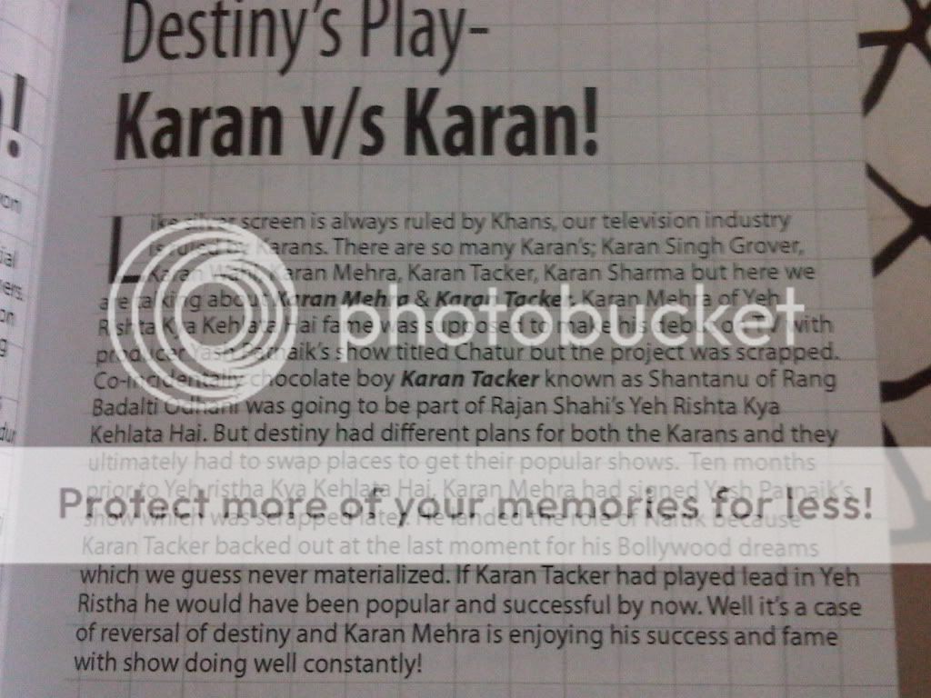 ya but ye artical nahi dekha tha but tnx dear....................................accha hua cuz wo naitik ke role main fit nahi hota.....................and comon agar karan wo deal le leta to apne kt aur yashu kaise milte jo hota bhain achain ke liye hota hain