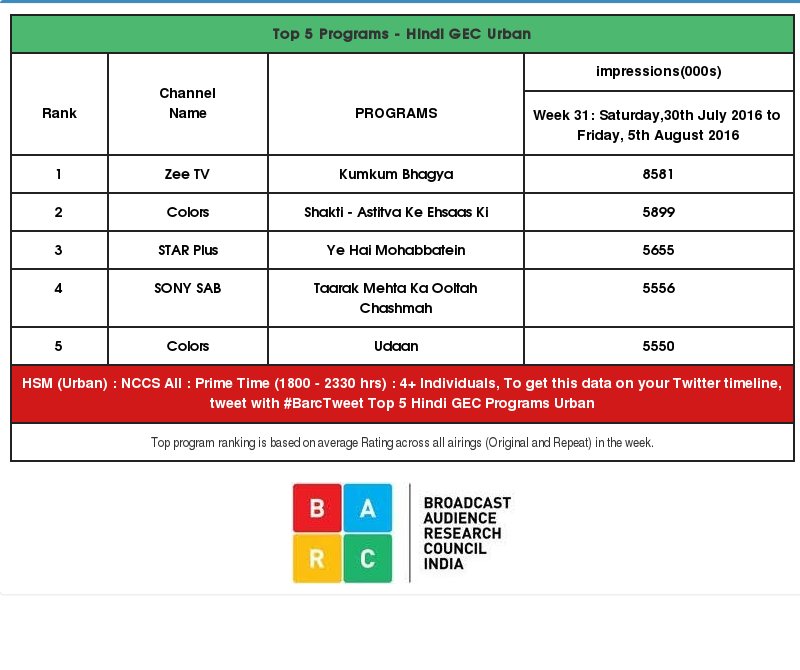 shakti is at number 2 from all shows