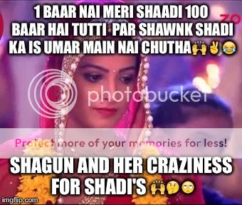 shagun and her crazy loveee for weddings is because she gets new clothes,jewellery and new weird hair style😆Budhappe mein bhi shadi ka shauq katam nahi hua iska😆